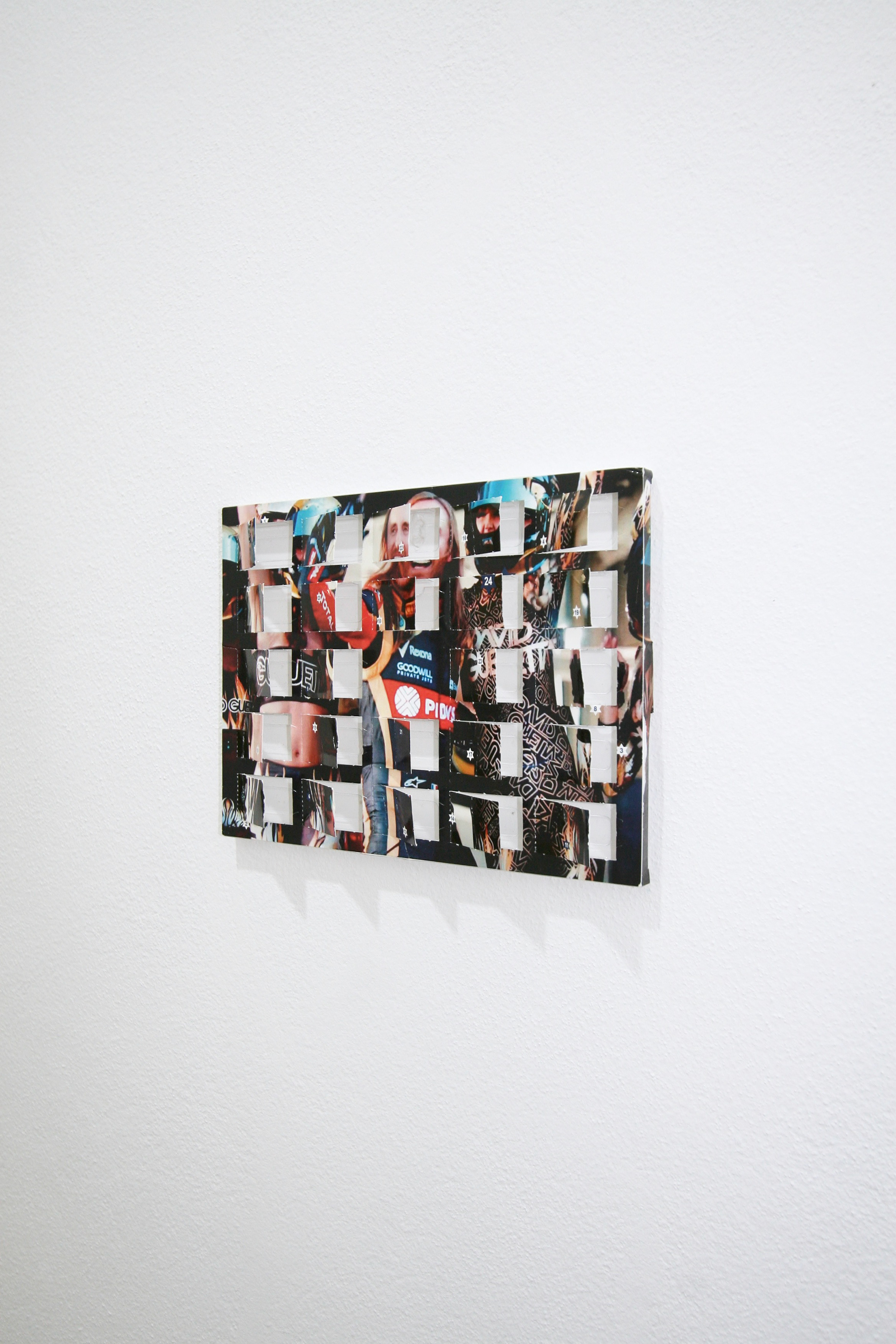 Each year, Olia’s husband - Dragan - orders a calendar for each of the four members of their family. Working within the at-hand material conditions of the internet, he searches for images online, selecting those which he decides would be likely to make each of them happy. These found images are then ripped from their initial contexts and added to the cardboard calendars using the print-on-demand service option for ‘image customisation’.
